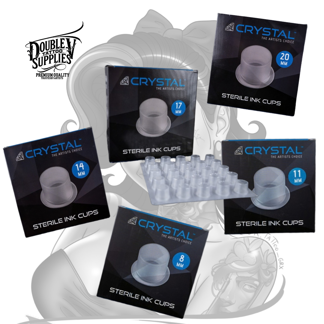 Caps Base Crystal Estériles · Vasos de tinta para tatuaje