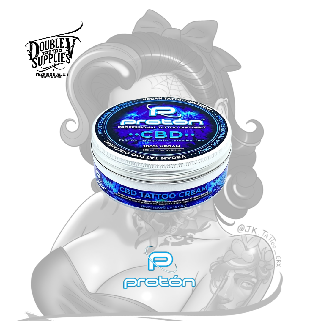 CBD Proton Tattoo Butter no es «otra crema post-tatuaje más»: es el aftercare definitivo creado para tatuadores que entienden que un buen tatuaje empieza cuando apagas la máquina. Con CBD natural de espectro completo y fórmula Made by Nature, calma la inflamación, acelera la regeneración y mantiene el color vibrante desde el día 1. Es recuperación pura. Sin irritaciones. Sin costras feas. Sin colores apagados.