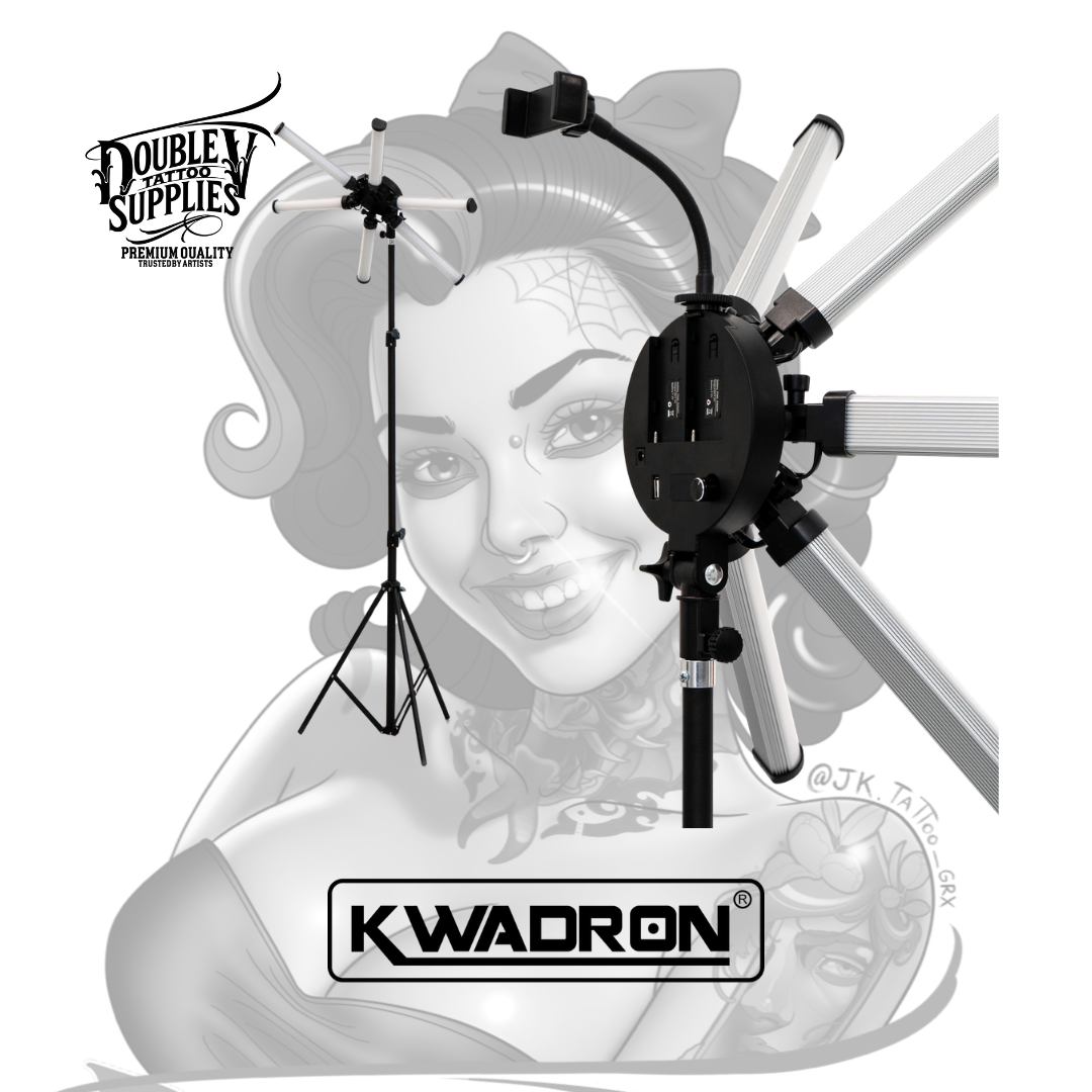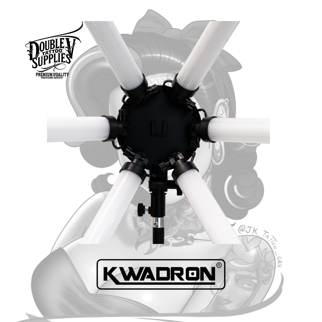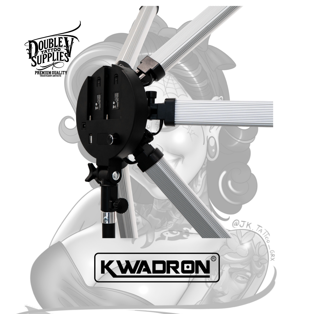 Lamp 6 LIGHT Small (también conocida como SHINE Small 6 LED) de Kwadron es la lámpara LED profesional compacta con 6 paneles LED individuales ajustables de 54W de potencia total, temperatura de color variable 3200K-5600K, control de brillo 10-100%, y sistema de alimentación dual (adaptador AC 110-240V o baterías 2x NP-F970) diseñada específicamente para iluminación sin sombras en trabajos de precisión extrema donde cada detalle milimétrico es crítico proporcionando distribución lumínica multidireccional que elimina sombras proyectadas por manos del tatuador. No es una lámpara doméstica adaptada: es equipamiento profesional de iluminación de estudio con CRI ≥90 (reproducción cromática excelente), 420 LEDs (210 fríos + 210 cálidos), brazo articulado ajustable, panel de control ergonómico intuitivo, puerto USB 5V/2A para cargar smartphone, y estuche protector de transporte incluido que transforma estudios con iluminación inadecuada en espacios de trabajo con visibilidad quirúrgica.
