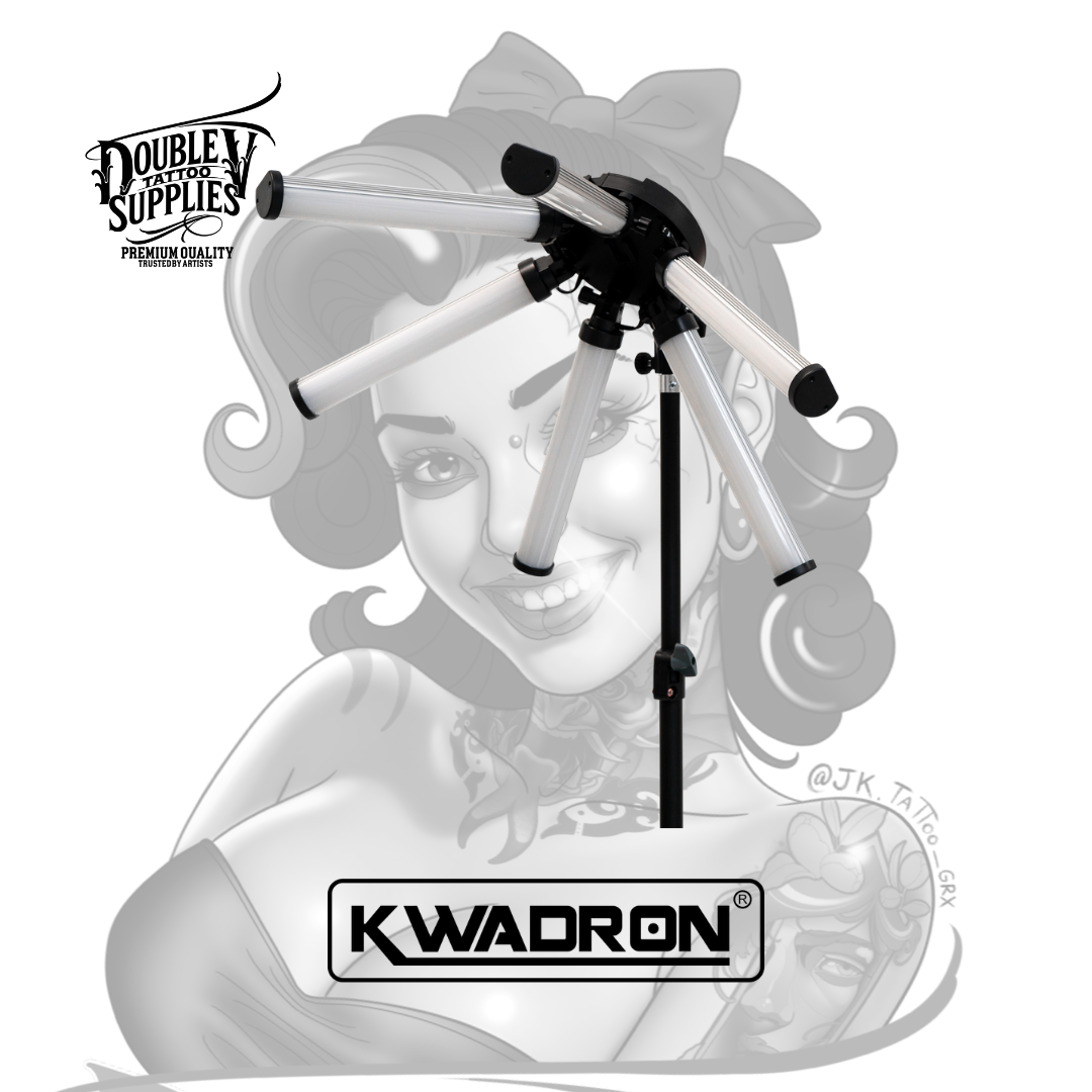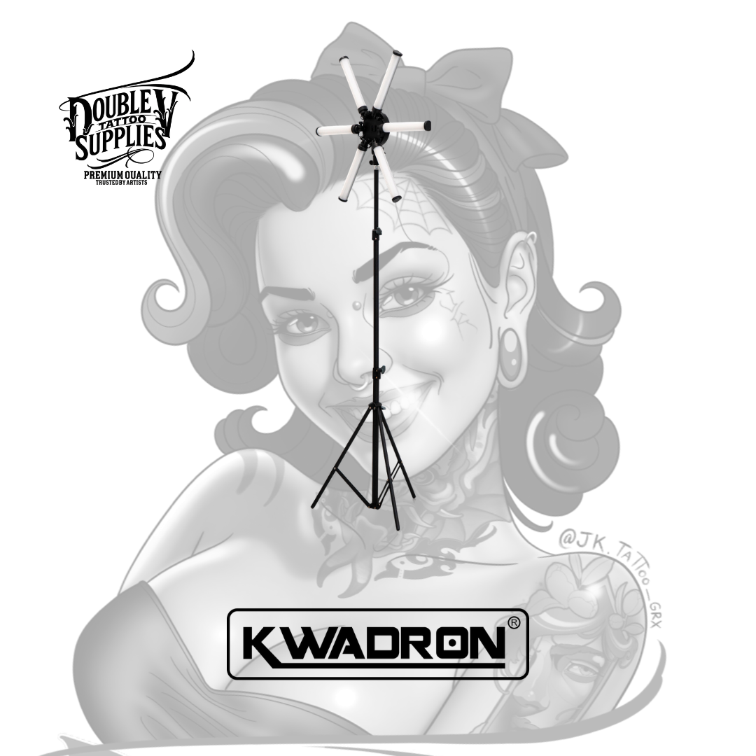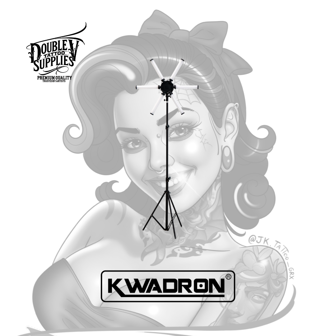 Lamp 6 LIGHT Small (también conocida como SHINE Small 6 LED) de Kwadron es la lámpara LED profesional compacta con 6 paneles LED individuales ajustables de 54W de potencia total, temperatura de color variable 3200K-5600K, control de brillo 10-100%, y sistema de alimentación dual (adaptador AC 110-240V o baterías 2x NP-F970) diseñada específicamente para iluminación sin sombras en trabajos de precisión extrema donde cada detalle milimétrico es crítico proporcionando distribución lumínica multidireccional que elimina sombras proyectadas por manos del tatuador. No es una lámpara doméstica adaptada: es equipamiento profesional de iluminación de estudio con CRI ≥90 (reproducción cromática excelente), 420 LEDs (210 fríos + 210 cálidos), brazo articulado ajustable, panel de control ergonómico intuitivo, puerto USB 5V/2A para cargar smartphone, y estuche protector de transporte incluido que transforma estudios con iluminación inadecuada en espacios de trabajo con visibilidad quirúrgica.
