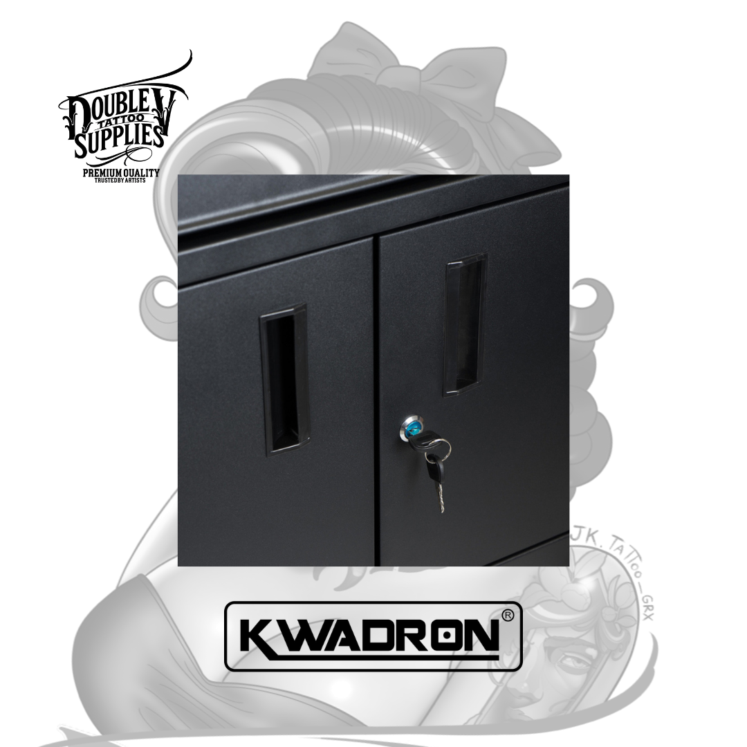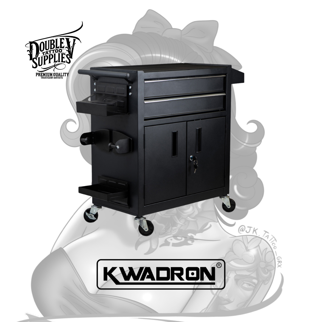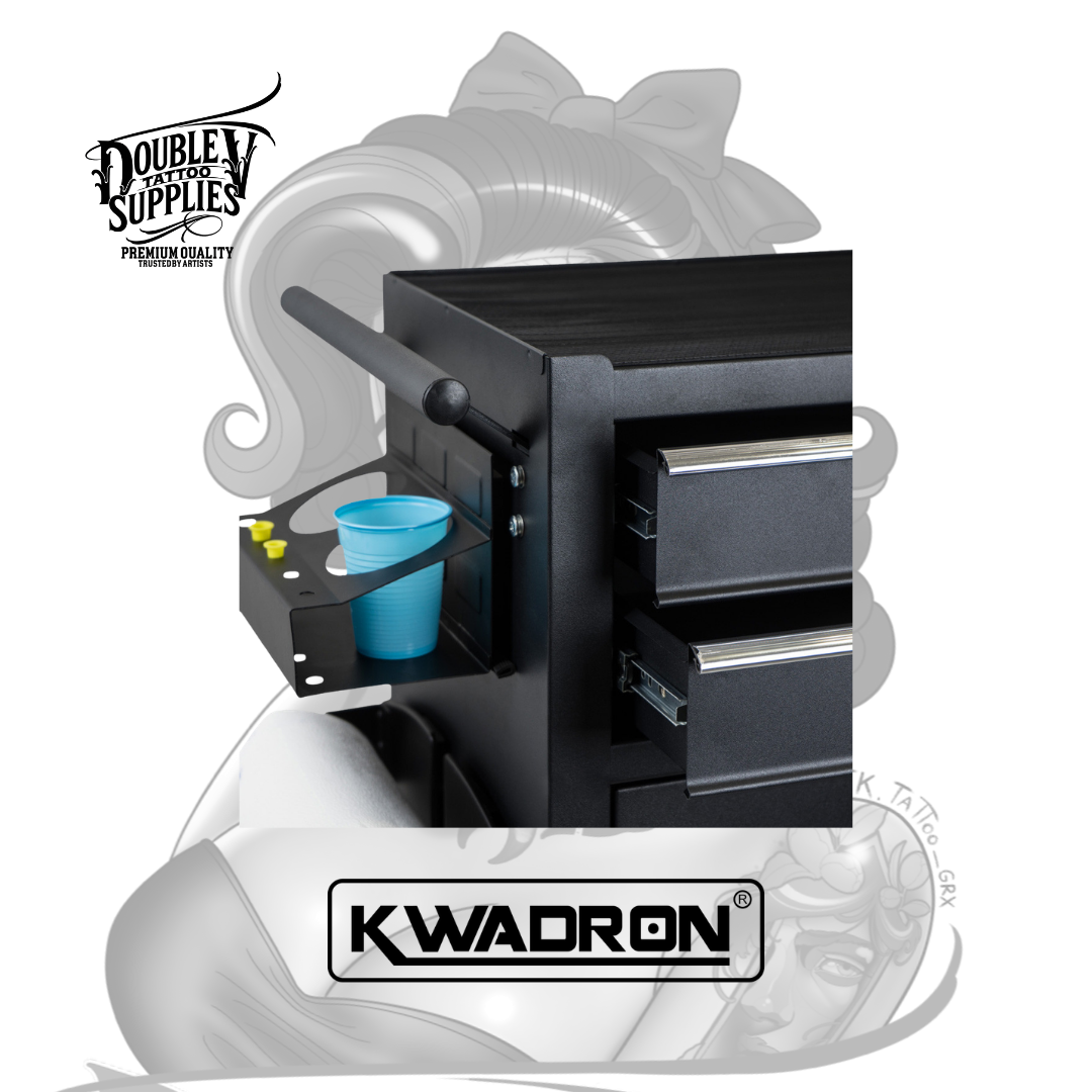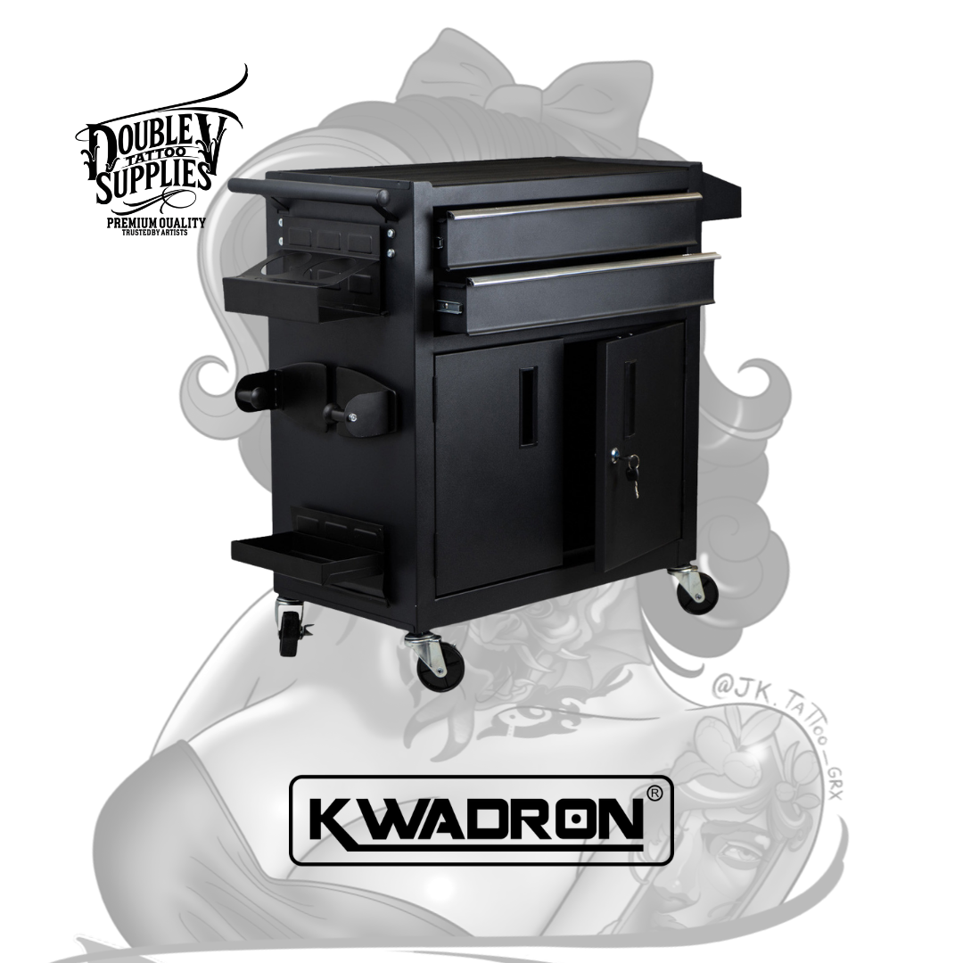 Mobile Workstation LUX-ON Black de Kwadron es la estación de trabajo móvil compacta de nueva generación con sistema revolucionario de 3 estantes magnéticos modulares reposicionables, encimera de acero con alfombrilla antideslizante de goma, y 2 cajones profundos con guías telescópicas forrados en foam protector diseñada específicamente para maximizar versatilidad organizativa en footprint ultra-reducido (61x73x34 cm) permitiendo personalizar configuración según flujo de trabajo individual mientras proporciona movilidad absoluta mediante 4 ruedas de goma con bloqueo y seguridad total con cerradura de doble llave incluida. No es un carrito genérico adaptado: es mobiliario profesional modular inteligente con peso optimizado para estabilidad, estante lateral adicional espacioso, 4 ganchos para bolsas de residuos, y acabado en polvo negro resistente a desinfectantes que transforma estudios con espacio limitado en operaciones organizadas militarmente eficientes.
