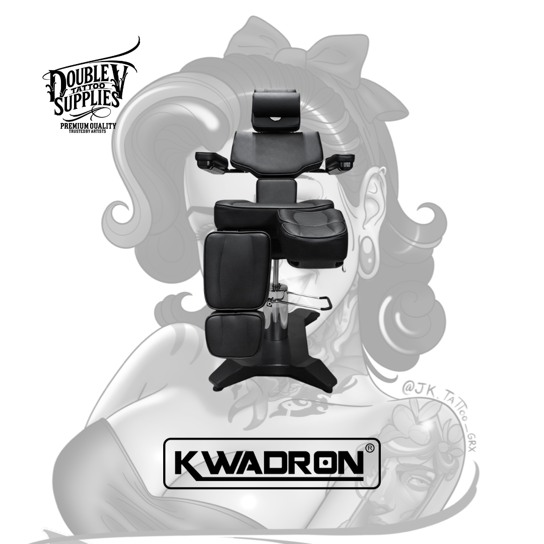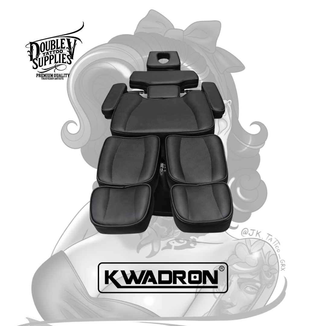 La Professional Hydraulic Tattoo Chair V2 es el estándar de oro en mobiliario para estudios de tatuaje. Diseñada por Kwadron para ofrecer una adaptabilidad total, esta silla permite posicionar al cliente en cualquier plano (sentado, tumbado o ángulos intermedios), garantizando comodidad absoluta en sesiones de más de 8 horas y libertad total de movimiento para el artista.