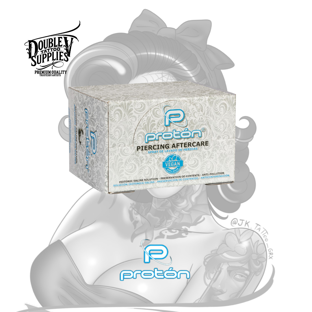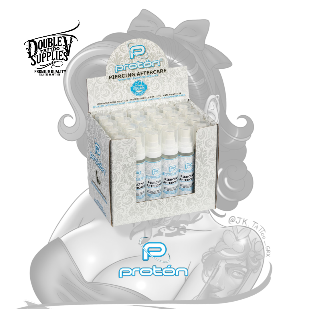 El pack de 24 unidades de Proton Piercing Aftercare representan una solución práctica y segura para estudios de tatuaje y piercing: se puede incluir en kits de aftercare, vender en unidades sueltas o como producto de cabecera del estudio.