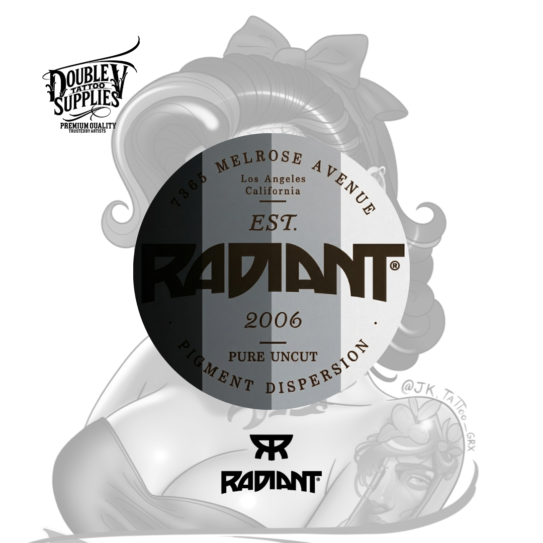 Incluye los 4 grises clásicos del catálogo Radiant: Sly Gray + Clever Gray + Sharp Gray + Slick Gray. Disponible en formato 1 oz (30 ml) y 2 oz (60 ml). Disponible en Vega Tattoo, Atom X Supply. Herramienta imprescindible para estudios especializados en B&G y realismo. [web:1026][web:1028][web:1042]