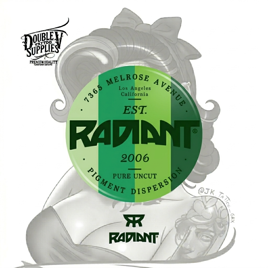 | ⬜ Radiant White | Blanco brillante y luminoso de alta opacidad — el blanco estrella del catálogo Radiant y el más vendido. Diseñado para realces, detalles finos y acabados impecables. Incluido en los Sets de 10 y 19 colores y en el Set Neotrad. [web:917][web:920][web:948] | 1 oz (30 ml) 2 oz (60 ml) 4 oz (120 ml) [web:920][web:951] | Realces de luz en realismo y color realism. Detalles finos en fine line. Brillo en neotradicional y japonés. Mezclas para aclarar colores. | 🔴 NO APTO para tatuar piel humana Confirmado por distribuidores ES: Pureworks, Grip Tattoo, Vega Tattoo, In Tattoo Veritas, Tattoox. [web:943][web:947][web:948][web:950] Uso exclusivo: piel sintética / formación. |