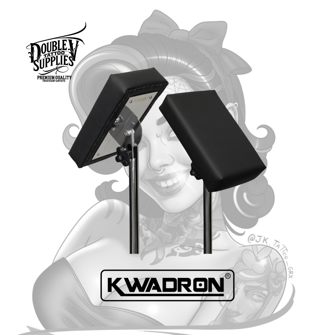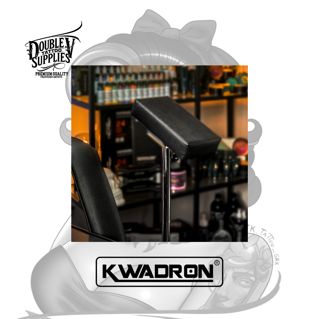 Tripod Black ArmRest de Kwadron es el reposabrazos profesional plegable con sistema de 3 patas atornillables tipo trípode diseñado específicamente para proporcionar estabilidad máxima durante sesiones de tatuaje eliminando vibraciones y movimientos involuntarios del cliente mientras garantiza portabilidad absoluta y almacenamiento compacto cuando no está en uso. No es un reposabrazos doméstico adaptado: es equipamiento profesional con altura ajustable 60-90 cm, cojín giratorio 360° de 26x16x4 cm tapizado en cuero ecológico resistente, configuración tripodal que distribuye peso uniformemente sin puntos de presión concentrada, y diseño plegable que ocupa espacio mínimo en almacén o transporte.